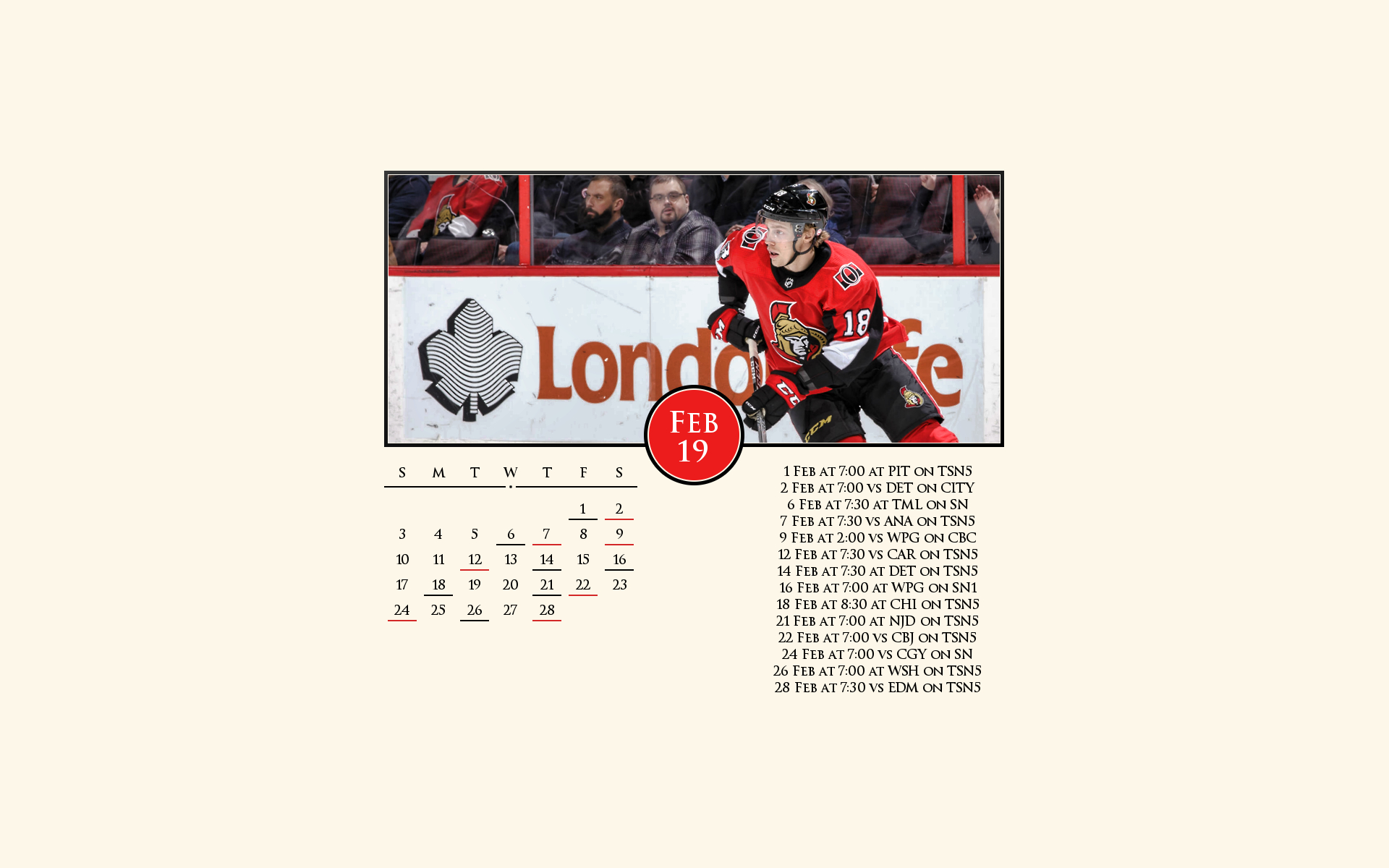 2018-19 Ottawa Desktop Calendar Wallpapers