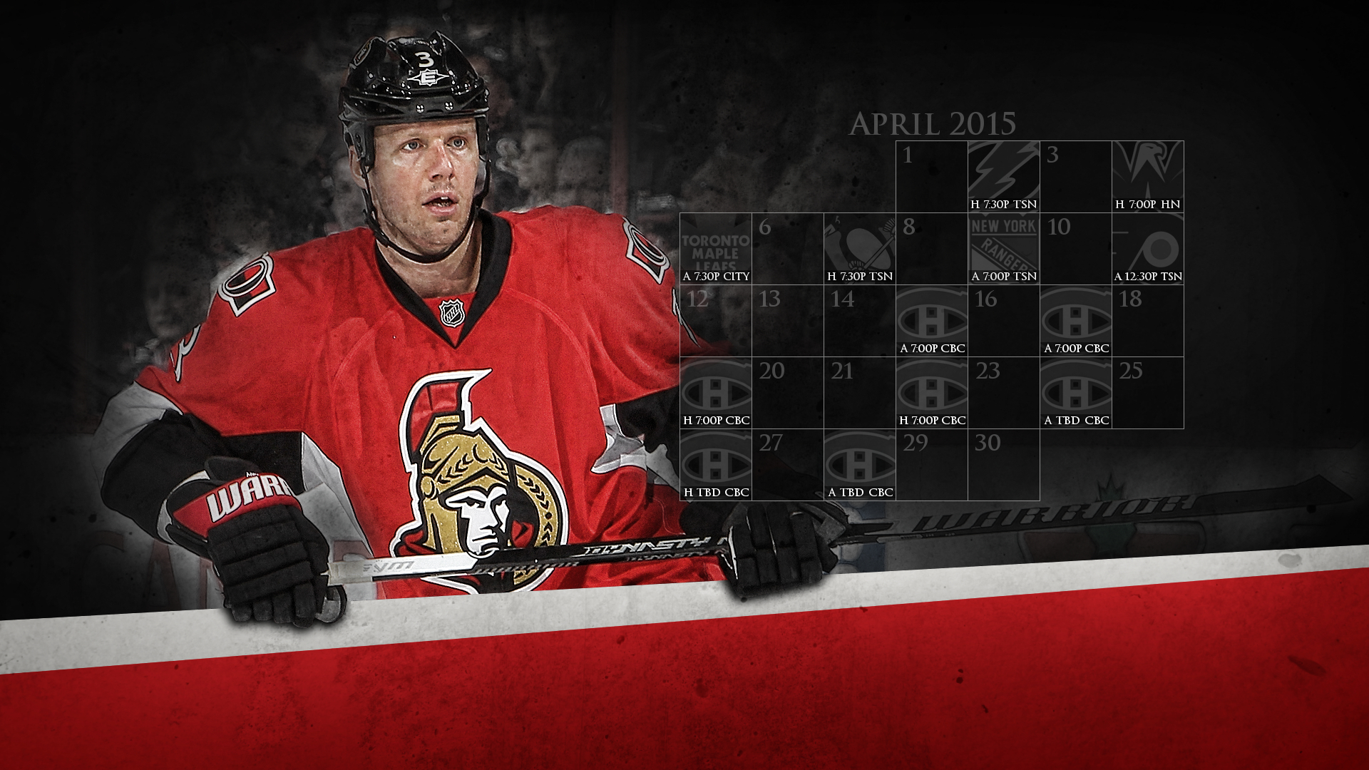 What a run! Yesterday afternoon the Senators clinched a playoff berth, shocking everyone from three months ago. Yesterday night, the opponent became official: Montreal. Today, we bring you a revised desktop calendar wallpaper for April 2015!